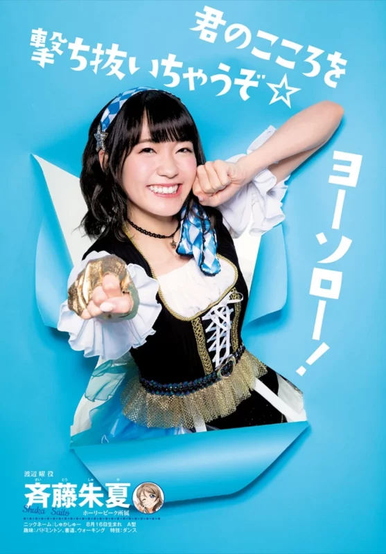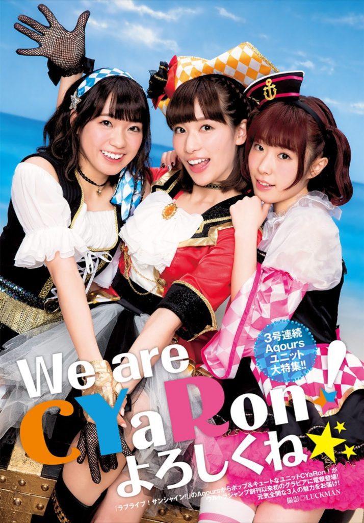 The group’s name is a combination of the initials of the first names of the characters (C = Chika, Y = You, R = Ruby) which formed a cute sounding name, CYaRon!.