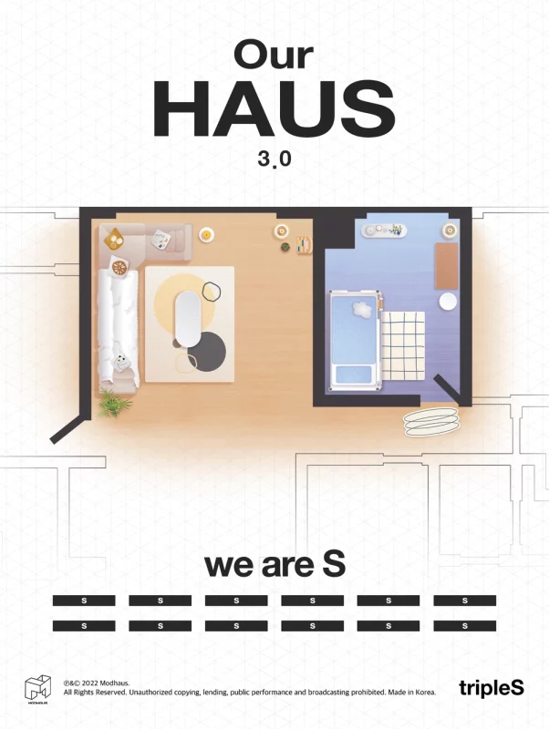 Yeouido HAUS is the sixth revealed Haus of tripleS. It has a capacity of 6 people. The dorm housed members Kim YooYeon, Kim NaKyoung, Gong YuBin, Kotone, Kwak YeonJi, Nien and Park SoHyun. This Haus was used to house Kotone and Kwak YeonJi when they returned from Japan, and then used to house S1-S14 along with Seongsu Haus. The Haus has been archived since May 21, 2023 and no members have moved there since.