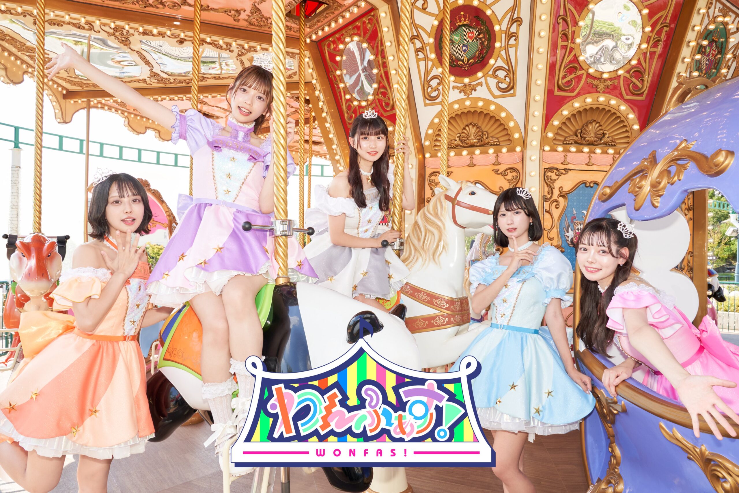 WONFAS! (わんふぁす!) is a five-member Japanese idol group under Collet Promotion Inc. with the concept of “a theme park that both adults and children can enjoy.” The group currently consists of Kohinata Mai, Fukuzawa Misumi, Hanamura Sara, Nakajo Mashiro, and Nishino Yuzuki. They made their stage debut on September 20, 2021.